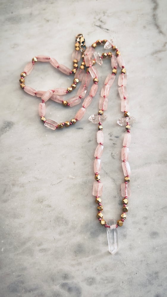 AMAZONITE + QUARTZ // SANDALWOOD TASSLE bracelet set